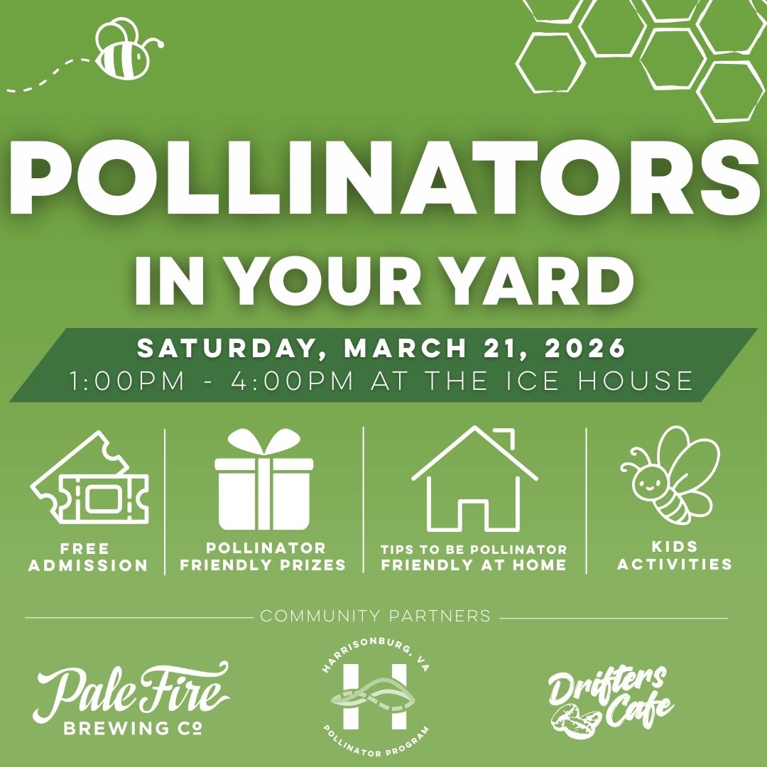 Join us for the fourth annual Pollinators in Your Yard event, taking place in Downtown Harrisonburg at the Ice House building, Pale Fire Brewing Co., and Drifters Café! This event, which celebrates ongoing efforts to support Harrisonburg as a pollinator-friendly city, is full of information and activities that the whole family may enjoy.