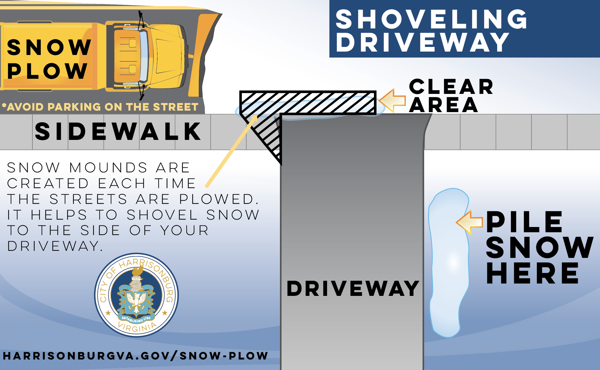 Harrisonburg is a pedestrian-friendly community and it is important to have clear sidewalks for those biking or walking as a mode of transportation and able to do so safely. Sidewalks that are not clear of snow may force pedestrians to walk in the street, which is not safe.