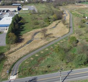 project reach. Much of Blacks Run is piped or constrained by infrastructure upstream of the project site.This project was funded largely part in 2021 by the Department of Environmental Quality Stormwater Local Assistance Fund (SLAF) grant. Construction began in 2022 and was completed in 2025.