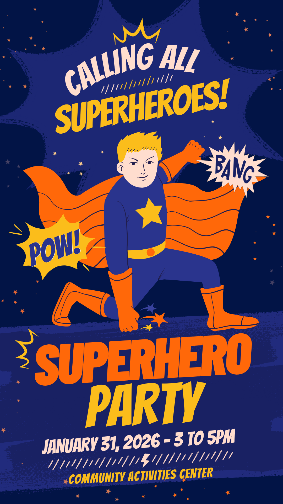 Bring your superhero to the Community Activities Center for a fun filled superhero party!